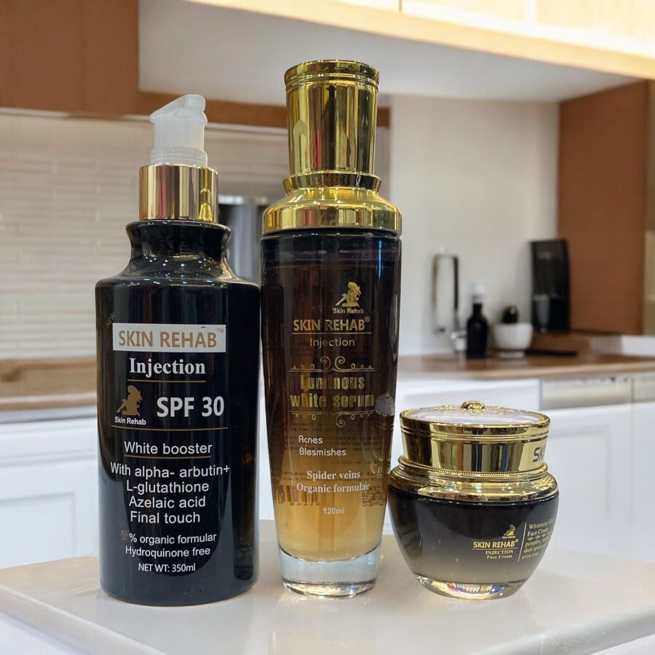 Skin Rehab injection white booster goes beyond, whitening the skin, this organic formula helps to eliminate scars, hyperpigmentations marks, it will repair damaged bleached skin due to hash chemicals and sun damages. This formula will leave your skin supple and glowing and your skin will thank you.