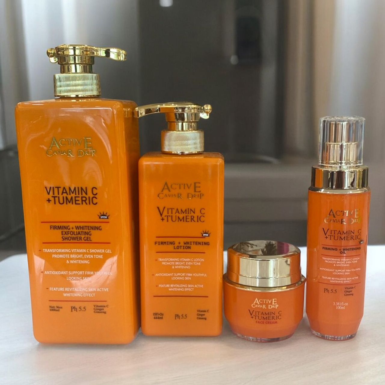 Shower Gel and Body Lotion ; whitening shower gel is a perfect combination of anti aging ingredients with natural antioxidant vitamin c helps to promote even skin tone natural whitening, ferulic acid is a antioxidant turmeric support firm, youthful looking skin while helping hydrate and moisturize dehydrate dry skin. Features revitalization skin plumbing moisturizers. This whitening lotion also contains other great natural ingredient.