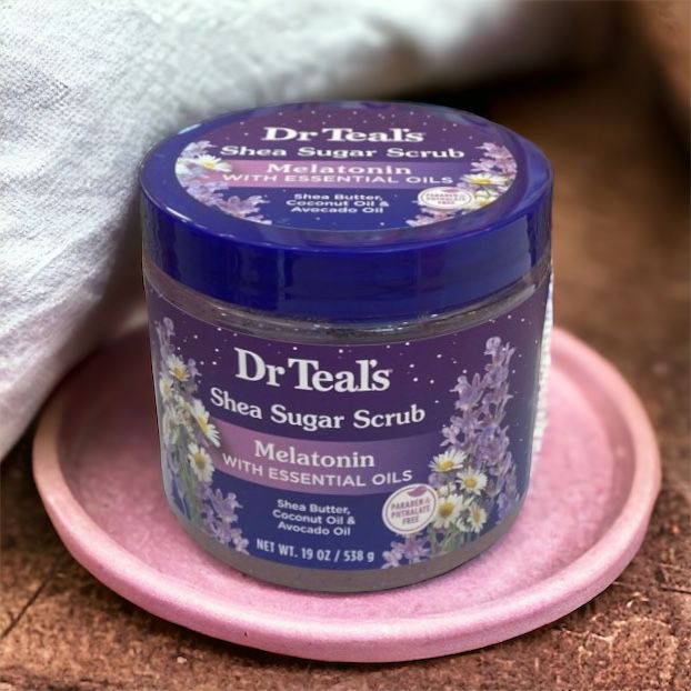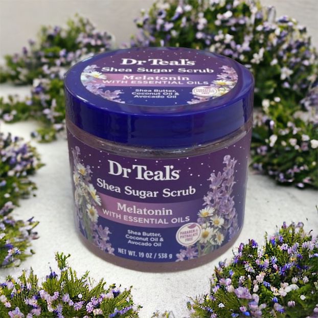 Dr Teal’s Shea Sugar Body Scrub is formulated with Shea butter, sugar, and essential oils to exfoliate and smooth skin. Melatonin and essential oils help promote a better nights sleep and calm the mind, while Shea butter, coconut oil and avocado oil leave the skin moisturized.