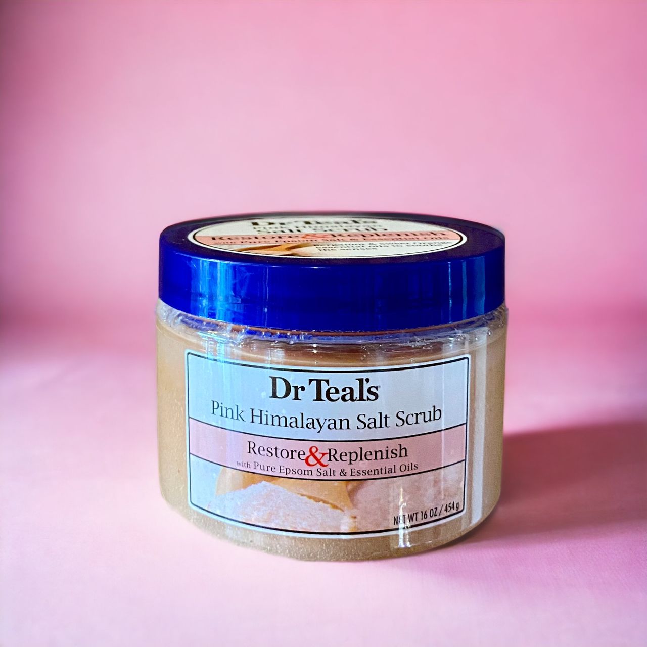 Dr. Teal's Pink Himalayan salt scrub blends nutrients rich pink Himalayan salt and pure Epsom salt to exfoliate and smooth skin. Restorative Bergamot and sweet orange essential oils soothe the senses, while shea butter and jojoba oil , leave the skin moisturized.