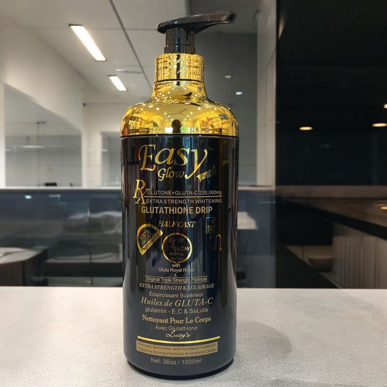 Easy Glow glutone+gluta-c 220,000mg extra strength whitening glutathione drip half cast whitening body wash is a pure organic body wash with premium whitening care RX glutone+Gluta-C 220,000mg drip contains a fabulous and luxurious whitening agent allying delicacy and performance, this unique care glutathione drip half cast whitening body wash will bring out your beauty by hydrating, by unifying and by revealing the brightness of your skin, it reveals day after day in the perfection of a complexion of an infinitely sublime beauty.