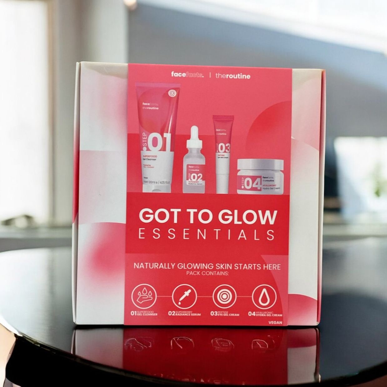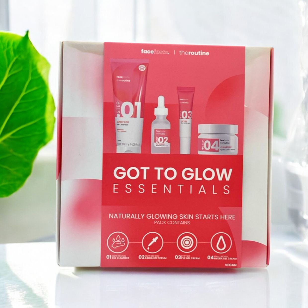 Face Facts Got To Glow Essentials is a facial set consisting of four facial set which are;superfood gel cleanser, super berry radiance serum, peptide eye gel cream and hyaluronic hydra gel cream.