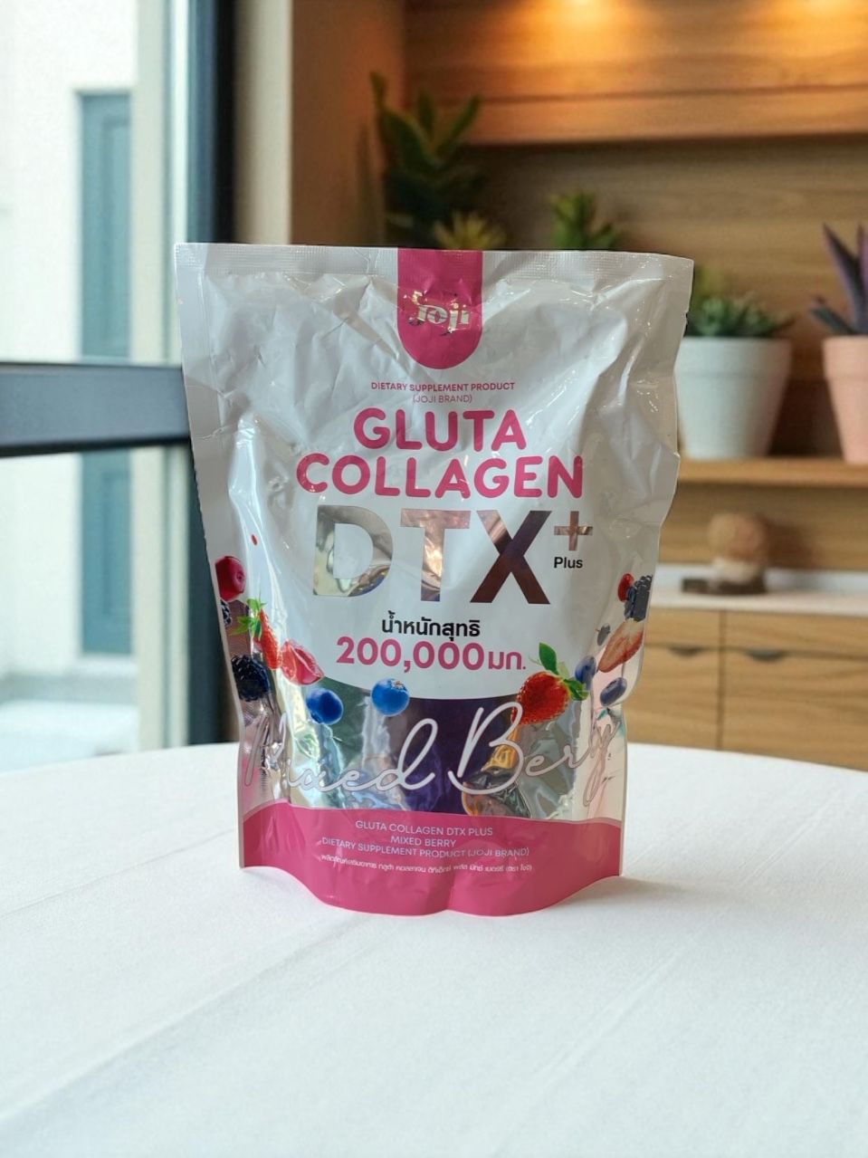 It aims to brighten skin, improve skin elasticity, and detoxify the body. The product is a powdered drink mix, with one sachet typically mixed with 100cc of cold water.