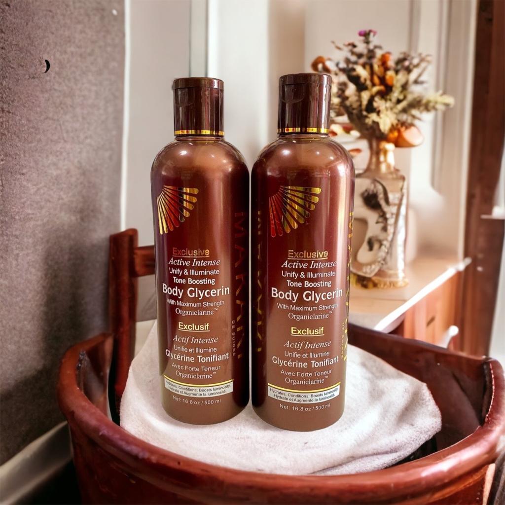 Exclusive Tone Boosting Body Glycerin infused with advance skin-lightening botanicals helps clarify several darkened hyperpigmentation, illuminate body's complexion, improve the look of skin's texture and illuminate skin tone for a renewed, youthful appearance.