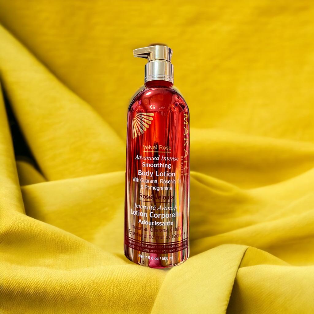 Makari Velvet Rose smoothing body lotion is a synergistic blend of anti-aging body firming botanicals specifically developed for lightening the look of body's appearance. it helps to detox skin diminishing the look of stretch marks and sagging skin tone revealing more toned, smoother-looking skin.