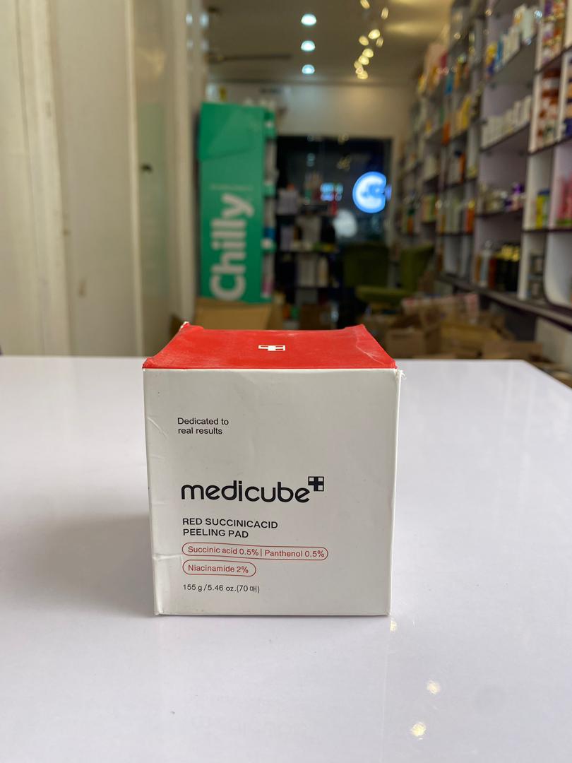 The Medicube Red Succinic Acid Peeling Pad is a dual- sided exfoliating toner pad for acne prone skin featuring Succinic Acid to combat breakouts and blemishes, Salicylic Acid (BHA) and Glycolic Acid (AHA) for exfoliation, and Panthenol and Niacinamide to soothe irritation and redness. These pads gently remove dead skin cells, reduce post-acne marks, balance oil, and improve skin texture for a brighter, more even, and clearer complexion. They are dermatologist-tested, non-comedogenic, have a skin-friendly pH, and are formulated without artificial fragrances or colors, making them suitable for daily use by both teens and adults with acne concerns.