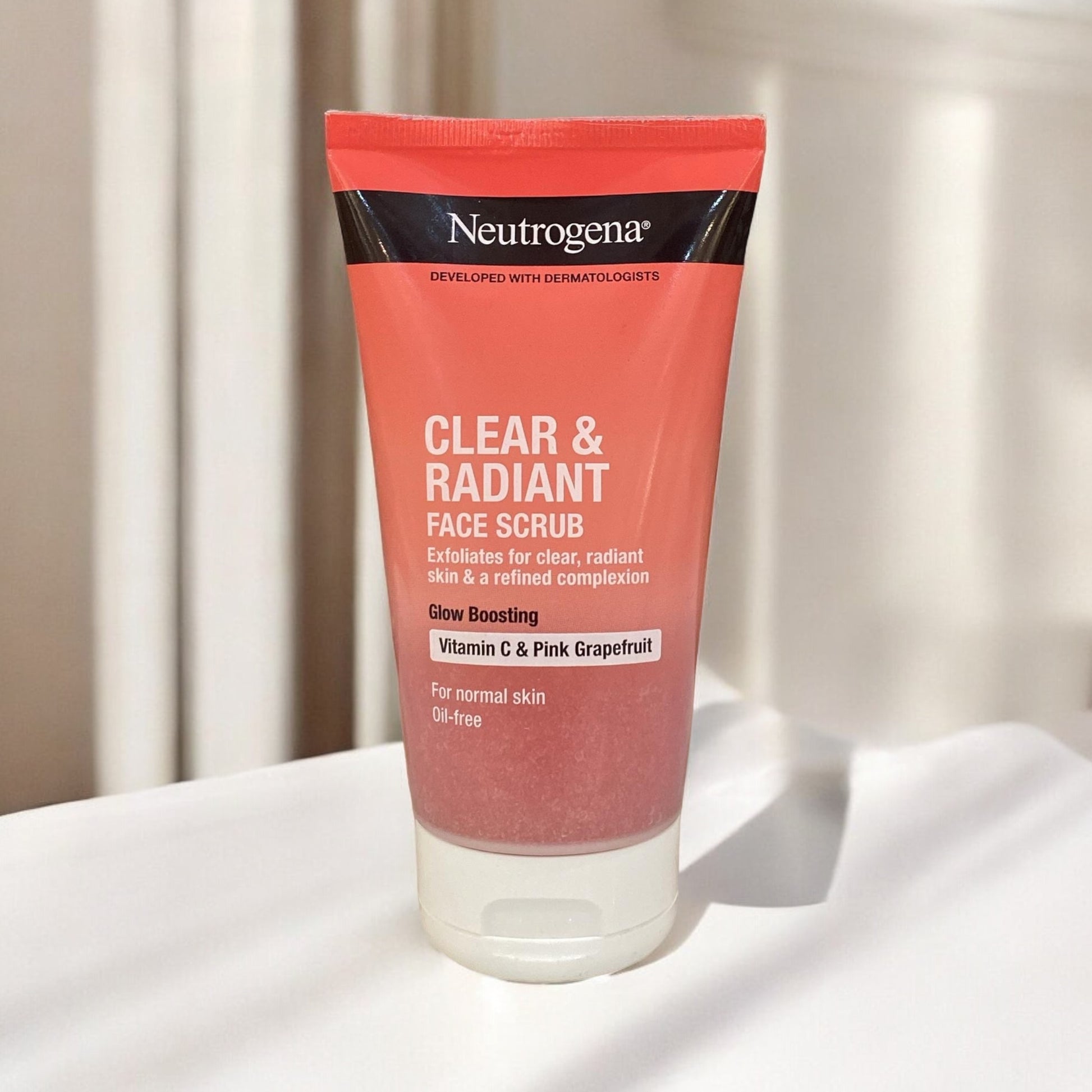 Neutrogena Refreshingly Clear Daily Exfoliator. This refreshing daily facial scrub contains pink grapefruits & vitamin c for a clearer radiant complexion. With natural exfoliators, that unclogs pores, the formula deeply cleanses to help prevent imperfections without over drying skin.