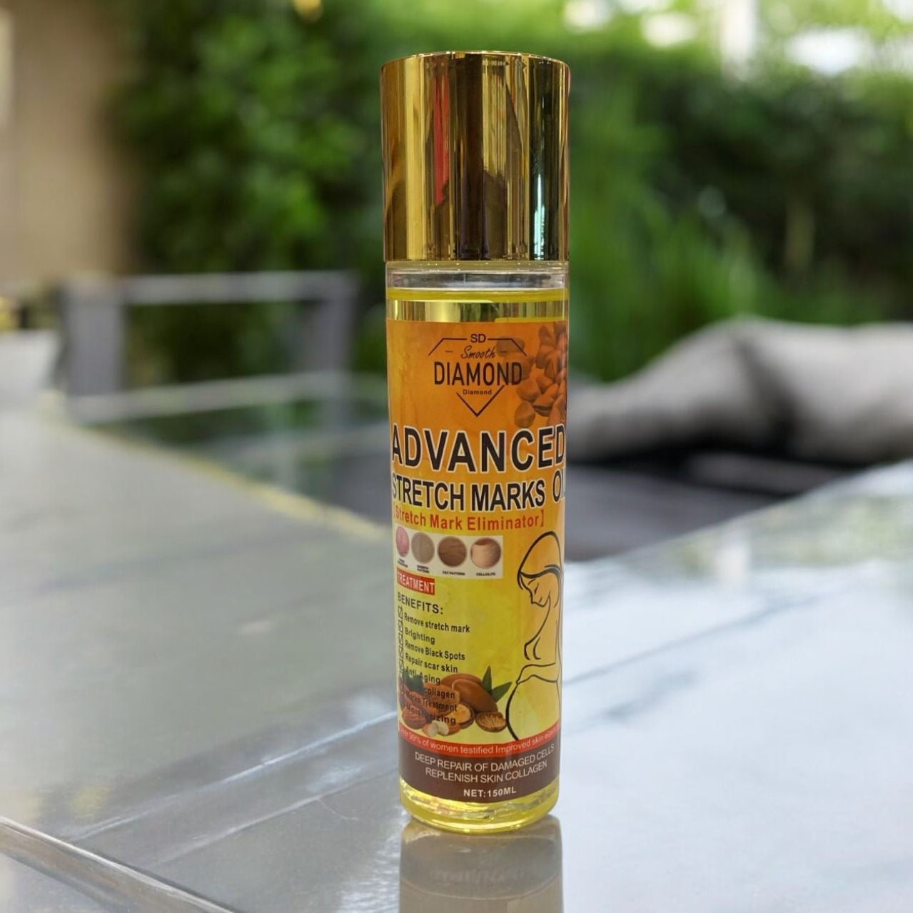 Smooth Diamond Advanced Stretch Marks Oil. Formulated with almond and Lavender Oil that helps to soothe, hydrate and reduce the appearance of stretch marks, scars wrinkles and provides healthy skin condition.