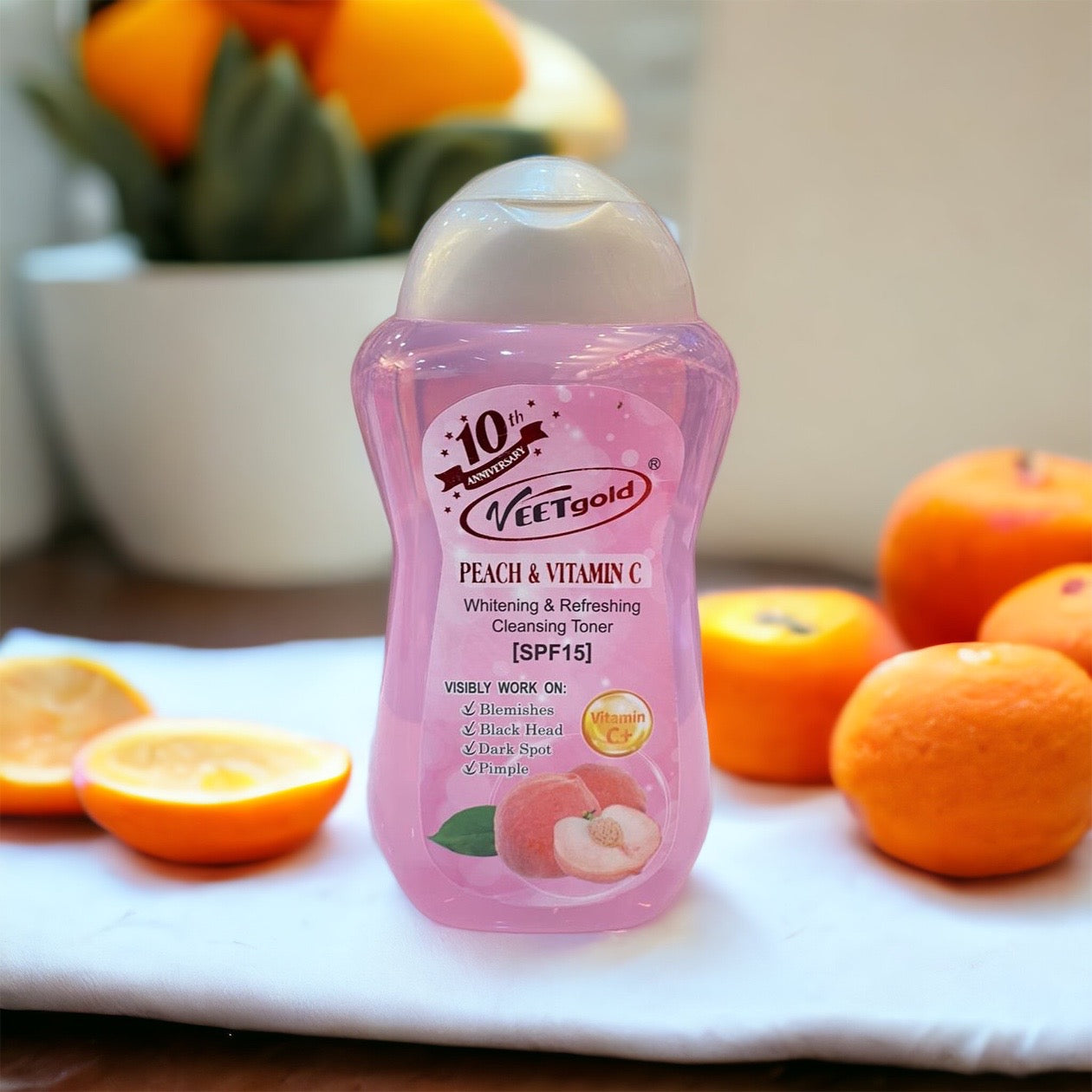 Veetgold Facial Whitening Facial Cleanser is a combination of Peach, Vitamin C & Sunscreen SPF 15 that guarantees clarity in the treatment of pimples, burn, breakout, acne, wrinkles, and dark spot. The herbal toning effect gives a glowing radiance, soft, flawless, smooth and glowing skin