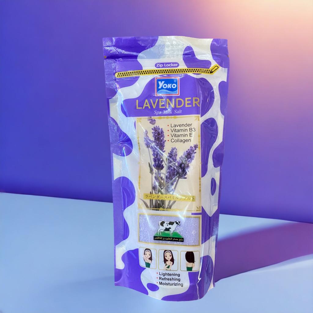 Lavender and milk blended ingredients, nourish your skin. Rich in vitamin E, natural benfits of salt, protein from milk, helps remove dirt. it cleanses and moisturizes the skin to leave the skin feeling clean.